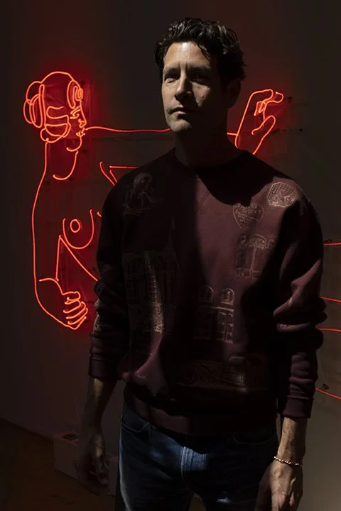 currently lives and works in Southern California. He earned a BA in Fine Art from Hastings College in Hastings, NE where he also studied Biology and Art History. From there he went on to work for textile sculptor Sheila Hicks in Paris, France, to bend neon at the Hollywood School of Neon in Hollywood, FL, and to obtain an MFA at the San Francisco Art Institute in San Francisco, CA. He is a steward of neon not only in his own artwork but also in the restoration of notable artworks of other artists as well as movie props and other beacons of cultural significance.